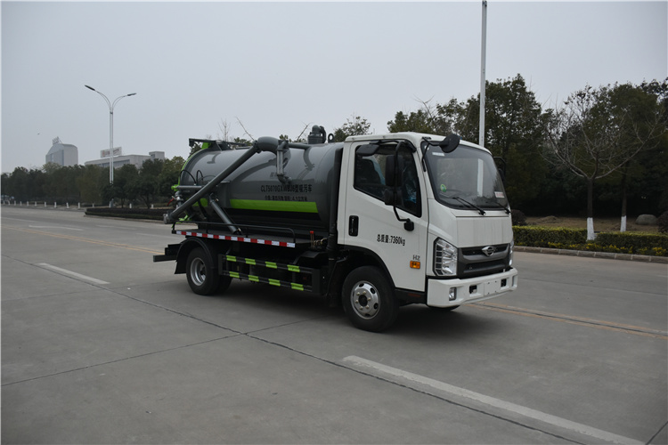 該車主要用于下水道排污及疏通,主要裝置為罐體和吸污裝置;罐體有效容積:1.54立方米;罐體外形尺寸(總長×直徑)(mm):2900×950;ABS型號為CM4XL-4S/4M,生產廠家為廣州瑞立科密汽車電子股份有限公司;卸料方式為舉升后卸式;側、后防護材料均為:Q235碳鋼,側防護連接方式為:螺栓連接,后防護連接方式為:焊接連接,后部防護截面尺寸(mm):100×50,后部防護離地高度(mm):390.隨底盤選裝駕駛室。