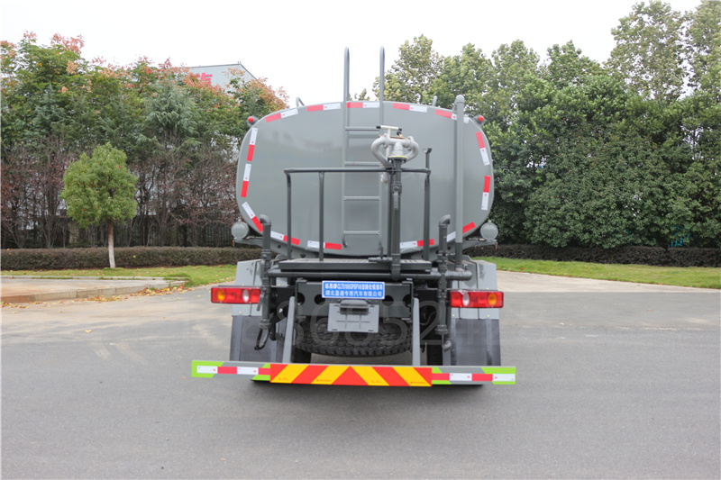 14,罐體采用武鋼優質碳鋼板制作,罐體厚度為4mm,底板和副梁4.5mm,拼板和罐體封頭全自動焊,帶消防栓接口自流口,兩根輸水管,前沖,后灑,側噴,尾部操作平臺,主管道加粗為76,配綠化水炮,水炮射程30-35
