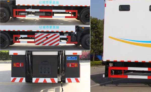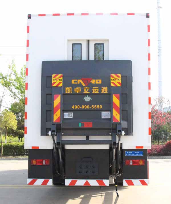 縱昂牌CLT5180XCSEQ6型廁所車,盈通汽車城市環衛廁所車,城市廁所革命車,該車主要裝置為箱體、水箱、便池、洗手臺等設施,用于流動廁所服務;側、后防護材料均為:Q235碳鋼,連接方式均為:焊接連接,后部防護截面尺寸(mm):130×60,后部防護離地高度(mm):400.ABS的型號及生產廠家:3631010-C2000/東科克諾爾商用車制動系統(十堰)有限公司,J ABS/焦作博瑞克控制技術有限公司;隨底盤選裝駕駛室,僅采用底盤軸距(mm):5600改裝.液壓尾板收起狀態的水平長度為300mm;尾板質量為450kg.