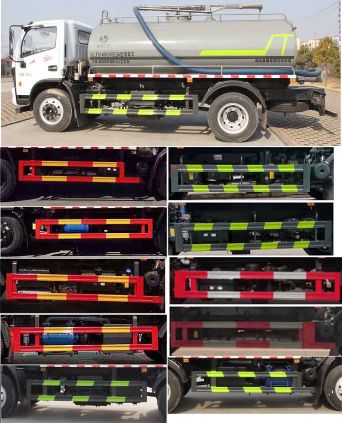 縱昂牌CLT5140GXEEQ6型吸糞車|盈通汽車多利卡12方吸污吸糞車,該車主要專用裝置:罐體及吸糞裝置,主要用于抽排運污水、糞便、泥漿等液態污物;罐體總容量9.98立方米,罐體有效容積9.5立方米,罐體外形尺寸(×長軸×短軸)(mm):4200×2100×1500;ABS型號/廠家:ABS型號:ABS/ASR-24V-4S/4M,廠家:襄陽東風隆誠機械有限責任公司;側、后防護材料均為:Q235碳鋼,連接方式均為螺栓連接,后部防護截面尺寸(mm):120×50,后部防護離地高度(mm):460;僅采用底盤3800mm軸距改裝.隨底盤選裝駕駛室,選裝電瓶,油箱位置.隨底盤選裝限速裝置,車速89km/h.