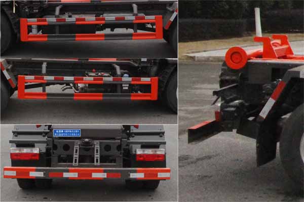 縱昂牌CLT5071ZXXEQ6型車廂可卸式垃圾車|盈通汽車多利卡掛鉤鉤臂式垃圾車,該車主要用于垃圾轉運,專用裝置為勾臂;隨底盤選裝駕駛室,側、后防護材料均為:Q235碳鋼,連接方式均為:螺栓連接,后部防護截面尺寸(mm):120×50,后部防護離地高度(mm):370;ABS型號/廠家:ABS/ASR-12V-4S/4M/襄陽東風隆誠機械有限責任公司.僅采用發動機型號和油耗值對應關系(L/100km):CA4DB1-11E6/16.3,CY4BK161/16.2,CY4BK461/16.2,D20TCIF1/16.3,D20TCIF11/16.3,YCY24140-60/16.3,ZD30D16-6N/16.3,H20-120E60/14.9,Q28-130E60/15.9,CA4DB1-13E6/16.2,Q23-115E60/14.5.該車型可選裝直接供電式ETC車載裝置.選裝電瓶,尿素罐,儲氣筒,進氣管位置布局;選裝鉤臂結構,勾頭自動鎖緊,后部滾輪結構,選裝不帶后部液壓支腿;僅采用底盤3308mm軸距改裝.