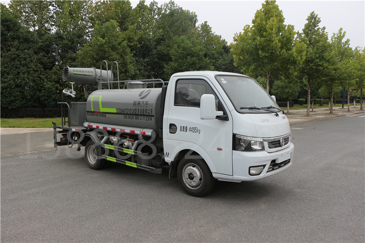 該車用途為抑塵降霾.主要裝置為罐體及噴霧裝置;罐體有效容積:2.11立方米,罐體外形尺寸(×長軸×短軸)(mm):2300×1350×950;選裝噴霧裝置。ABS型號/廠家:APG3550500A/浙江亞太機電股份有限公司;選裝ABS廠家及型號:襄陽東風隆誠機械有限責任公司/ABS/ASR-12V-4S/4M.側、后防護材料均為:Q235碳鋼,連接方式均為:螺栓連接,后部防護截面尺寸(mm):120×50,后部防護離地高度(mm):380.
