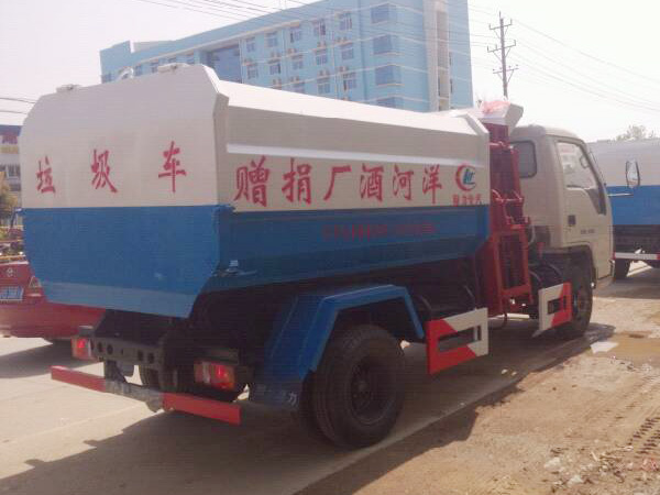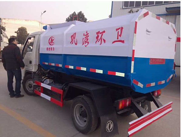 掛桶式垃圾車(自裝卸式垃圾車)介紹:掛桶式垃圾車又稱自裝卸式垃圾車,由密封式垃圾廂、液壓提升翻轉系統(tǒng)、操作系統(tǒng)組成。垃圾桶內垃圾翻倒上下一次工作循環(huán)時間≤50秒。可選配全國通用塑料垃圾桶和鐵桶,能實現一臺車與多個垃圾桶聯合作業(yè),循環(huán)運輸,充分提高了車輛的運輸能力,節(jié)省財務預算。廂體密封性好,無二次污染,可運輸各類垃圾,特別適用于短途運輸和轉運垃圾,如環(huán)衛(wèi)部門對城鎮(zhèn)垃圾的清理、運輸等。