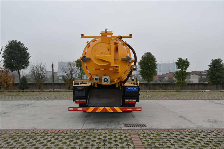 隨底盤選裝駕駛室,罐體外形尺寸(罐體總長×直徑)(mm):4900×1700(前面1600mm為清水罐,后部3300mm為污水罐);污水罐總容量:7.04立方米,污水罐有效容積:6.7立方米,介質:液態污物,密度800千克/立方米;清水罐總容量:3.5立方米,清水罐有效容積:3.34立方米,介質:,密度1000千克/立方米;清水罐和污水罐為獨立罐體,清洗功能時用清水罐,吸污功能時用污水罐,污水罐和清水罐不可同時滿載;ABS型號:ABS/ASR-24V-4S/4M;ABS生產企業:襄陽東風隆誠機械有限責任公司;側、后防護材料均為:Q235碳鋼,側防護連接方式為:螺栓連接,后防護連接方式為:焊接連接,后部防護截面尺寸(mm):120×50,后部防護離地高度(mm):440;該車用于下水道排污及疏通,專用裝置:罐體及清洗吸污裝置。卸料方式:舉升后卸式。選裝左右油箱位置,選裝罐體左右及后部樣式。選裝頂部護欄裝置,選裝車速89km/h.
